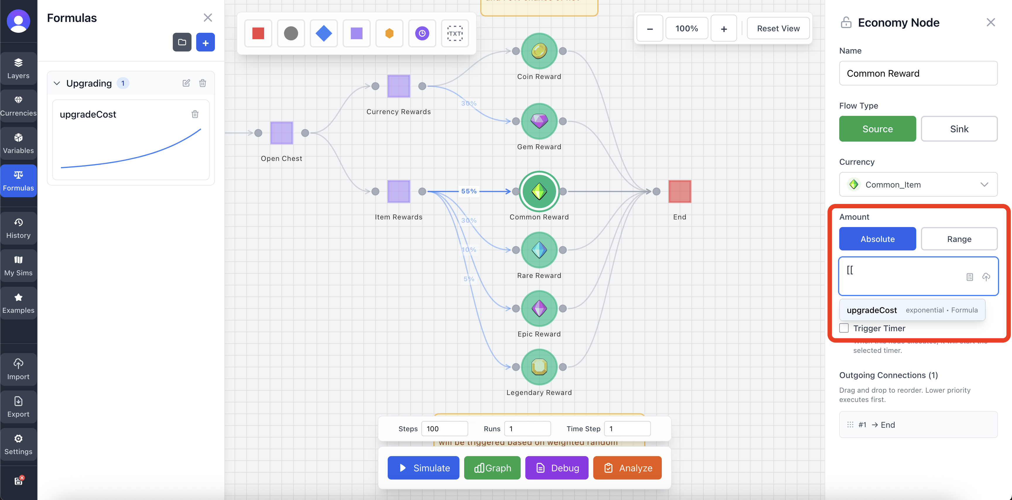 Preview X range for the formula graph (0 to steps). Default is 50. Used for visualizing the formula curve.