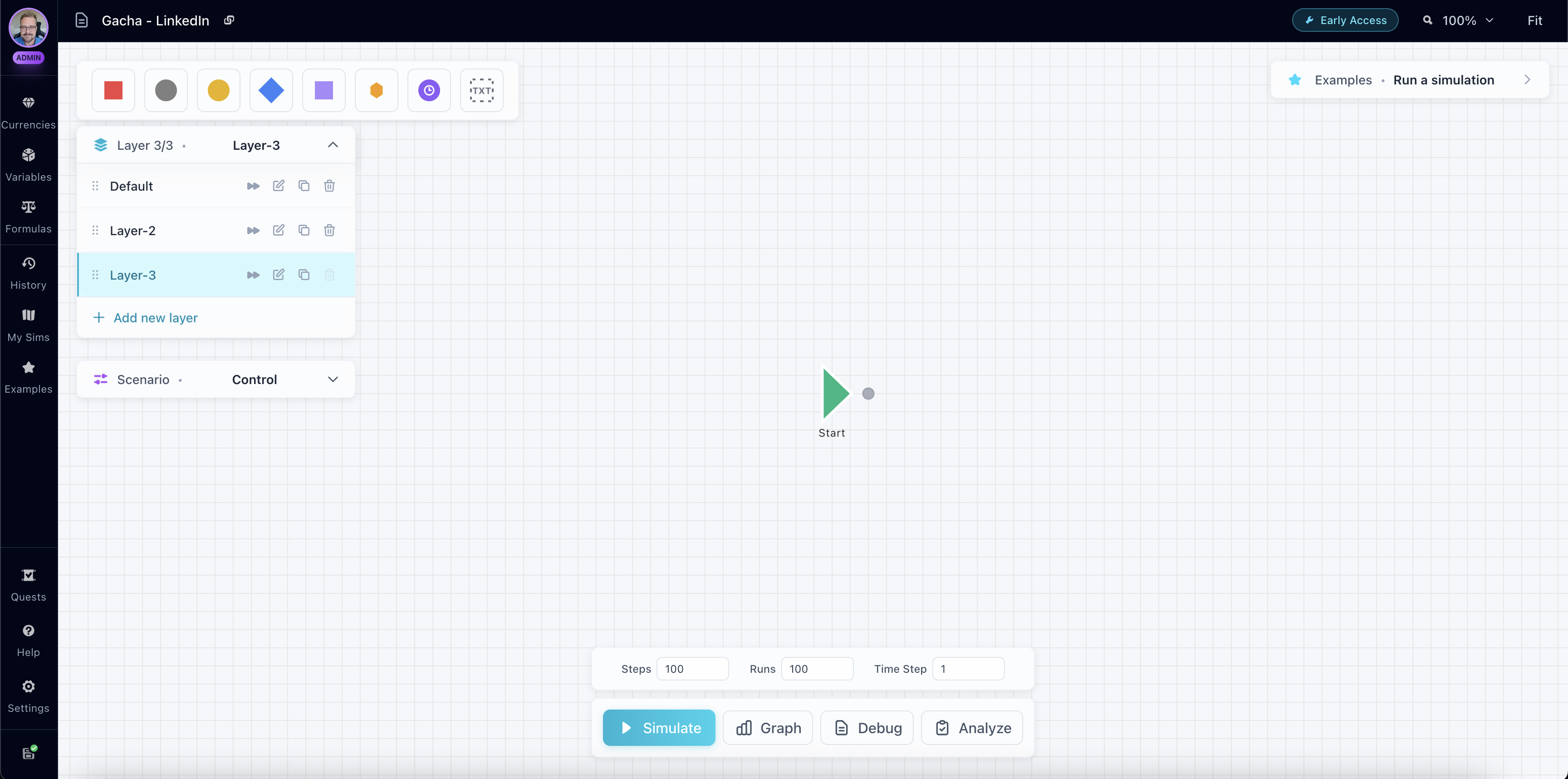 Layers organize simulation logic into separate, prioritized execution contexts. Each layer has its own nodes and connections, but shares global currency and variable state with all other layers.